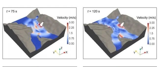 文一: MPMICE:一种用于模拟多孔介质中耦合问题的混合MPM-CFD模型——地震诱发的海底滑坡应用研究摘要:在本文中,我们描述了一种土壤融合结构的相互作用模型,该模型揭示了土壤力学(饱和沉积物),流体力学(海水或空气)和固体力学(结构)。该公式结合了材料点方法,该方法将多孔介质和结构的大变形建模与隐式连续流体欧拉式建模,该方法对复杂流体的流动进行了建模。我们验证该模型并模拟地震引起的海底滑坡的整个过程。我们表明,该模型捕获了饱和沉积物,海水和结构之间的复杂相互作用,因此我们可以使用该模型来估计潜在海底陆地载玻片对近海结构的影响。 图:土壤-流体-结构相互作用 图:基于MPMICE的土壤-水-结构相互作用耦合研究 图:材料之间的动量交换系数 图:GIMP加权函数(红色为线性基形状函数(绿色)和特征函数(蓝色)的卷积) 图:流体在等温多孔介质中流动的数值结果 图:水下泥石流模拟。 图:地震诱发海底滑坡过程中的剪切应变文二: 一种新的混合方法对潜在滑坡波浪灾害的数值模拟摘要:滑坡引起的波浪对人类的生命,财产和基础设施构成了重大风险。滑坡运动的多方面性质与固体流体相互作用相结合使对这些波浪的危害特别具有挑战性。这项研究提出了一种新型的杂化数值方法,用于模拟潜在的陆地滑动诱导的波浪。考虑到残留的坡度强度,并检查了潜在的滑坡位移和速度,采用了物质点方法(MPM)来评估滑坡运动。同时,平滑的粒子流体动力学(SPH)方法用于建模脉冲波的传播特征。这种新方法的有效性是通过两项物理测试确定的。随后,它被用来评估中国潜在滑坡引起的冲动波风险。这些发现表明,最大 波幅度为5.661 m,该波浪幅度达到近距离的居民区75 S后滑坡,以大约2.5 m/s的IMATE速度行驶。还探索了滑坡的剩余强度对冲动波振幅的影响。值得注意的是,残留强度增加了20%,导致峰值波幅度降低了62%。因此,对于衡量与滑坡引起的波浪相关的风险是必不可少的,全面的岩土研究和测试是必不可少的。这项研究为此类波浪提供了有效的数值模拟技术,并为风险评估提供了宝贵的见解。 图:MPM和SPH混合数值方法的概念图。 图:MPM和SPH混合数值方法的实现策略。 图:颗粒柱的快照会塌陷。颜色映射表示偏应变。 图:用现有的MPM方法和以前的数值结果比较颗粒柱坍塌的速度和位移。 图:王家山滑坡诱发波三维SPH数值模型。 图:王家山山体滑坡引致的波的传播在水塘水位825米每秒的计算结果。文三: 模拟两相岩土材料流体力学耦合问题的隐式稳定材料点法摘要:在本研究中,基于更新的拉格朗日公式,以固相位移和孔隙水压力为主要变量,开发了一种隐式稳定物质点法(MPM)来模拟不排水/排水条件下的类土两相耦合问题。我们没有在平衡方程中使用柯西应力,而是使用第一个Piola Kirchhoff应力(PK1应力),并严格执行目标Jaumann应力,以解释大变形。为了解决(几乎)不可压缩耦合问题中的数值振荡问题,使用有限差分法(FDM)计算存储在背景网格单元中心的孔隙水压力,Hughes(1980)提出的B-bar方法也被纳入所提出的MPM中,以避免体积锁定问题。通过对各种经典流体力学耦合问题的模拟,并将其与解析解或其他数值模拟进行比较,广泛验证了所提出的隐式MPM的可靠性和鲁棒性。该方法证明了其准确捕捉岩土材料中大变形行为和流体力学相互作用的能力,从而产生稳定可靠的模拟结果。 图:两相多孔介质的表示。 图:拟建MPM的示意图。 图:超孔隙水压力有限差分计算二维示意图:(a)不规则网格;(b) 均匀网格。 图:在建议的MPM中更新MP的孔隙水压力的过程。 图:局部荷载下的二维固结示意图(a)模型尺寸和边界条件以及(b)荷载历史。 图:通过所提出的MPM和FEM计算的超孔隙压力随时间的分布。文四: 一种有效建模FSI问题的局部子域平滑MMALE粒子方法摘要:工程实践中普遍存在具有多相流动动力学和结构损伤的流固耦合现象,这给当今的数值流固耦合算法带来了巨大的挑战。本文提出了一种新的局部子域平滑MMALE粒子方法(ls-ALEPM),用于高效准确地模拟大规模FSI问题。为了避免混合FSI速度场引起的伪应变,提出了一种解耦应力更新方案,通过在FSI界面附近引入虚拟速度场来更新固体颗粒的应力。具体来说,它的重映射阶段采用了基于高精度多面体交集的方法,但这很耗时。因此,提出了局部子域平滑方法(LSSM)来加速只涉及计算网格畸变区域的重映射阶段,该方法由畸变子域确定步骤和组合网格平滑步骤组成。组合网格平滑步骤的每次迭代由改进的GETMe和加权平均法组成,如果在规定的最大迭代次数后仍不满足质量标准,则采用超限插值法。通过几个基准数值算例和实际工程模拟验证了ls-ALEPM的有效性和有效性。 图:采用浸没边界法的FSI。 图:MMALE粒子方法的空间离散化。 图:MMALE粒子法解耦应力更新方案的计算过程:(a)从流体和固体中获得节点质量和力;(b) 在网格上求解动量方程;(c) 更新节点和粒子的位置和速度;(d) 虚拟网格的质量和动量是从实体重新映射的;(e) 利用虚拟网格对固体的应变、涡度和应力进行更新;(f) 放弃了虚拟网格,采用真实网格对流体变量进行更新。 图:畸变子域确定步骤的计算过程:(a)用第一畸变单元的周围单元得到第一子域;(b) 如果随后失真的单元格在现有子域的最大范围内,则子域被放大;(c) 当随后失真的单元格不在任何子域的最大范围内时,建立新的