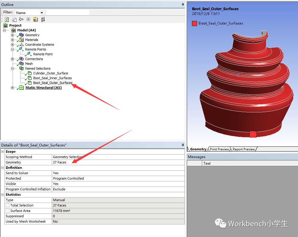 (3)选择橡胶圈的所有外面,右键Named Selections,并重新命名为Boot_Seal_Outer_Surfaces(此处一共27个面)。