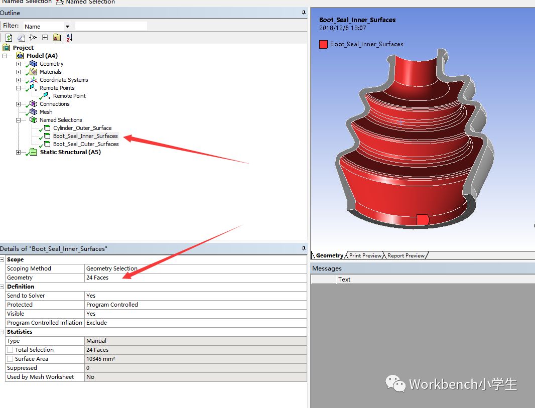 (2)选择橡胶圈的所有内面,右键Named Selections,并重新命名为Boot_Seal_Inner_Surfaces(此处一共24个面)。