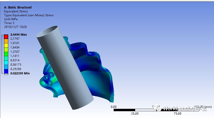 非线性的计算时间一般都比较长,需要耐心等待。如果出现不收敛,可修改网格尺寸。在计算中,我使用了默认的网格划分,计算出现不收敛,后来把网格尺寸改成1mm后计算收敛了。