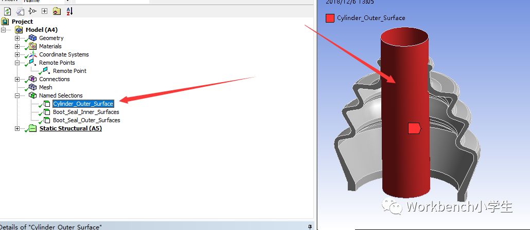 (1)选择圆柱面,右键Named Selections,并重新命名为Cylinder_Outer_Surface。