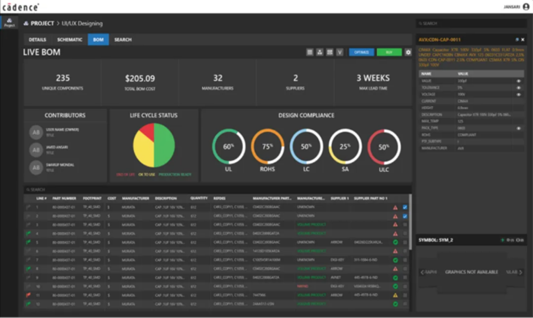 管理人员可以一目了然地查看项目能否按时完成,是否符合成本预算和相关标准,而工程师可以在设计环境中访问所需的最新器件和供应链数据。器件工程团队或供应链各方能够尽早对首选零件发表意见,并在设计过程中强制应用他们的选择,从而确保零件合规万无一失。