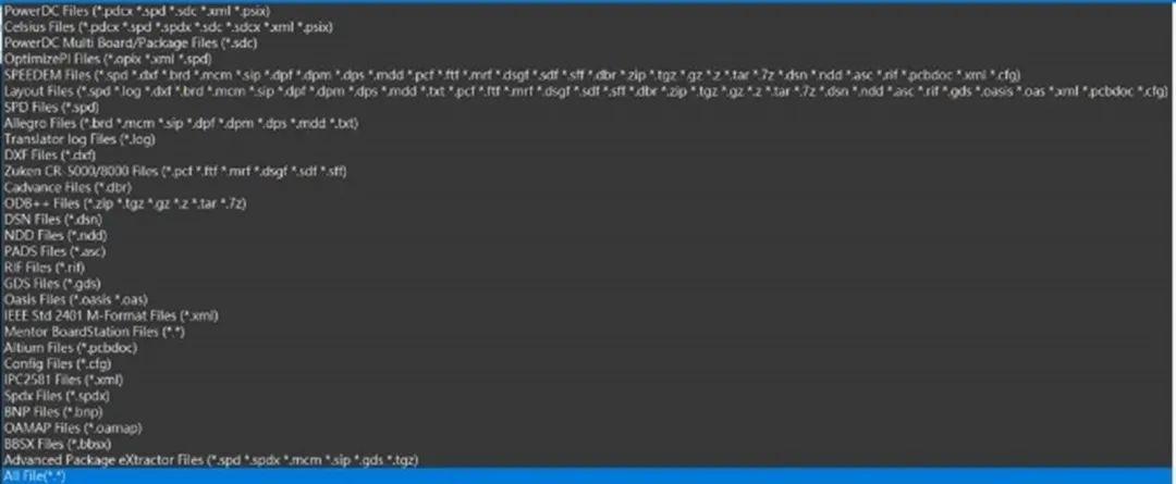 答:市面上常见的 PCB Layout 软件的 CAD 档案格式都有支持,如附图所示。