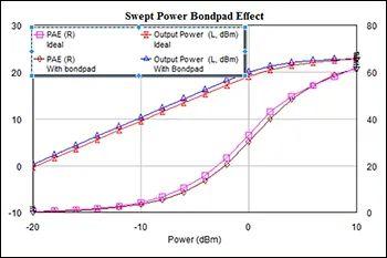 后继的 PAE 和 Pout 仿真也表明,这些相对较小但有必要的特征会引起非线性性能下降。相比之下,键合焊盘本身(图 11)的变化非常小。