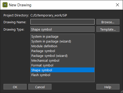 在 Allegro Package Designer Plus 中可以轻松创建新的形状。为此,只需选择 File – New,指定图纸的名称,选择 Shape Symbol,然后点击 OK。