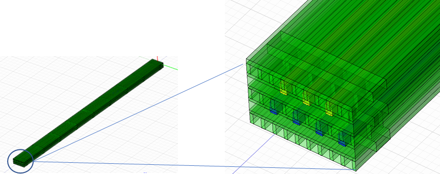 根据用户计划仿真的HBM 出线类型和对应的变量,将其在Cadence Clarity 3D Workbench中创建出HBM 3D结构图,如下图3。注意:所有需要参与参数化仿真的结构都要定义为变量,比如:金属线宽度。
