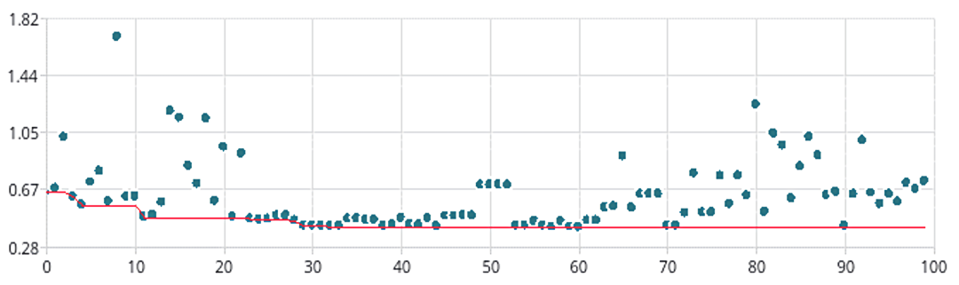 下图6为仿真结果收敛记录图表。从图表上可以看到第29次的时候已经获得非常好的值,这时用户就可以停止本次仿真或者先用第29次的结果作下一步的仿真。Optimality Explorer支持多case并行仿真,以进一步减少仿真时间。