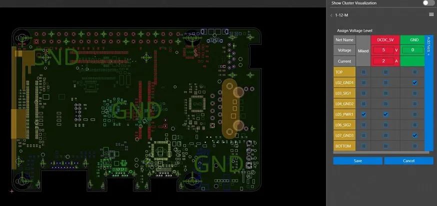 在 Allegro 环境中,只需选择电源和接地所在的层即可开始生成过程。