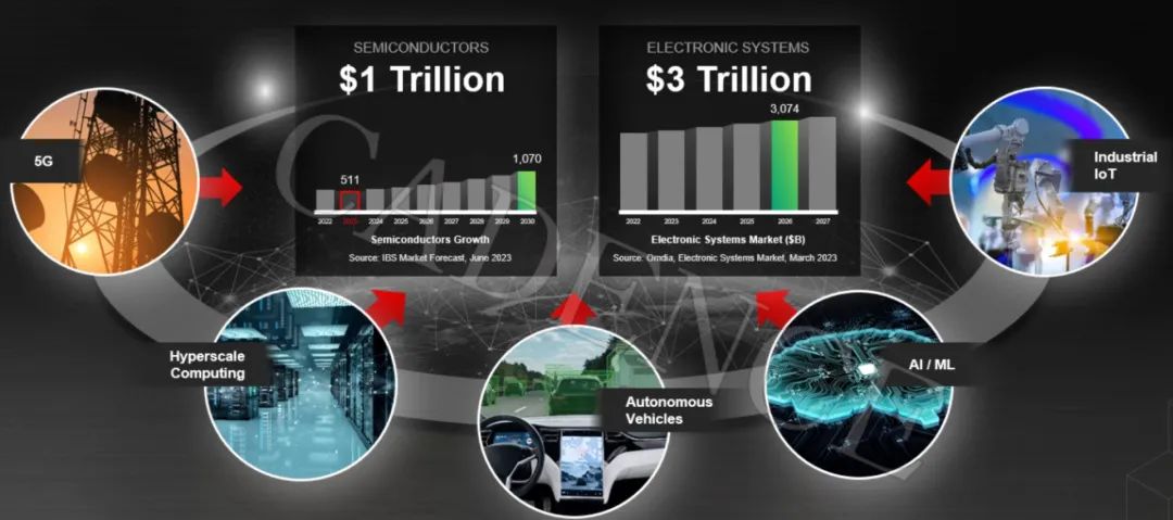然而,我们在不确定的环境中还是看到了很多确定的增长,市场调查机构 IBS 的最新预测仍然强劲,预计半导体行业到 2029 年将突破 1 万亿(1 兆)美元的大关,几乎是现在的两倍。另一件令我们和整个行业兴奋的事情是,IBS 预测全球系统业务收入在 2027 年将达到 3 万亿美元。