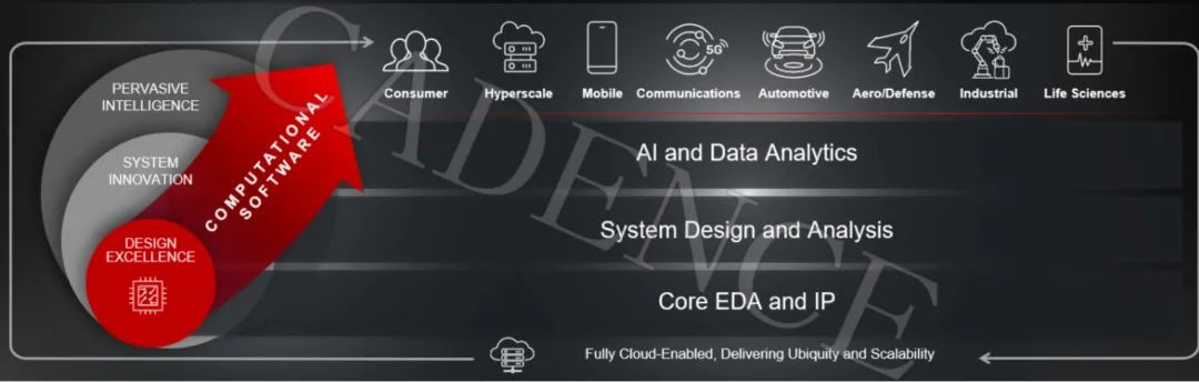 Cadence 用三个同心圆看待世界:最内圈是芯片;然后是系统圈;最外面是数据圈。这三个同心圆其实在各行各业都有所体现。