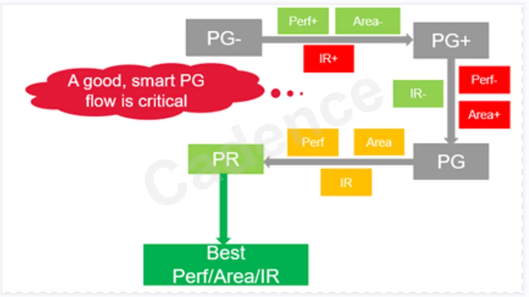 我们知道,一块芯片的性能通常通过频率、功耗、面积(即 PPA)三个方面去评估。在芯片设计过程中,工程师经常会对频率,面积进行调整,但是很少会对芯片供电网络(即 PG)进行比较大的调整,甚至在一些情况下明知道目前的 PG 可能不是最优的,工程师也没有动力去调整,为什么呢?