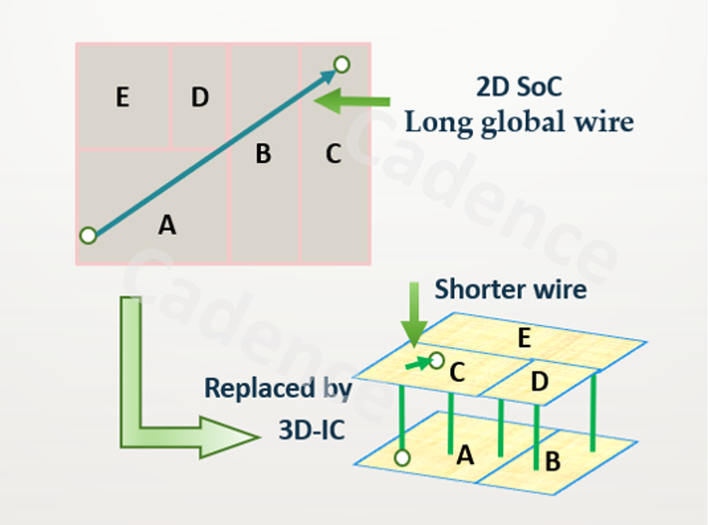 从设计初始就充分考虑三维实现的自由度能提供最佳系统性能。Integrity 3D-IC 助力架构和布图规划设计师从全局考虑不同模块在三维空间多层级上的逻辑物理分布。通过 Cadence 强大的的层次化早期布图规划算法实现不同单元、模块、IP 在不同层次晶粒的最优分配,将 3D-IC 优势发挥到极致。