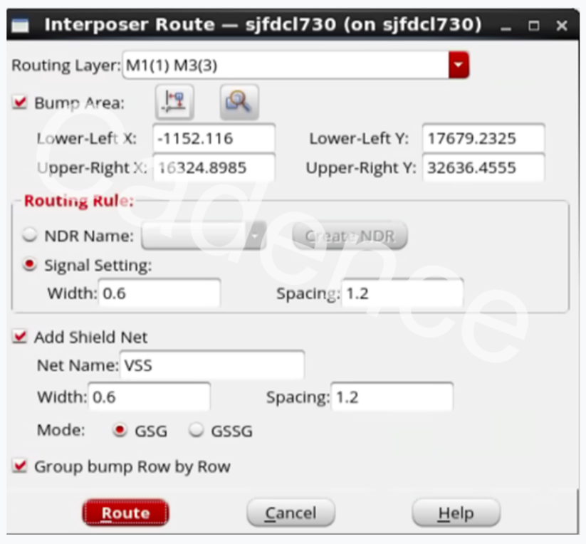 信号线的宽度和间距可以通过设计规则指定,也可以由用户直接指定。屏蔽线的宽度和间距可由用户界面指定,也可以由 Integrity 3D-IC 根据屏蔽参数在信号线中间自动计算预留空间以确保屏蔽的有效和完全。