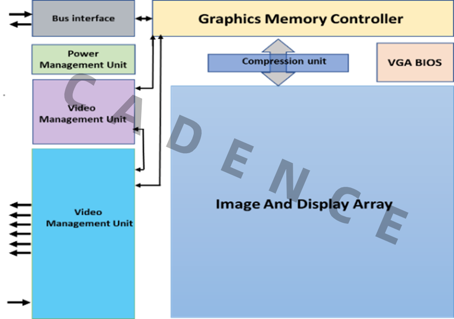 GPU 内部组成一般包括图形显存控制器、压缩单元、BIOS、图像和计算阵列、总线接口、电源管理单元、视频管理单元、显示接口,从图 1-1 可以直观观察到:GPU 的控制单元比较简单,但是图像和计算阵列占据了 GPU 的大部分面积,其中计算阵列采用设计简单的逻辑运算单元,通过大量复用的方式来并行执行高强度的运算。