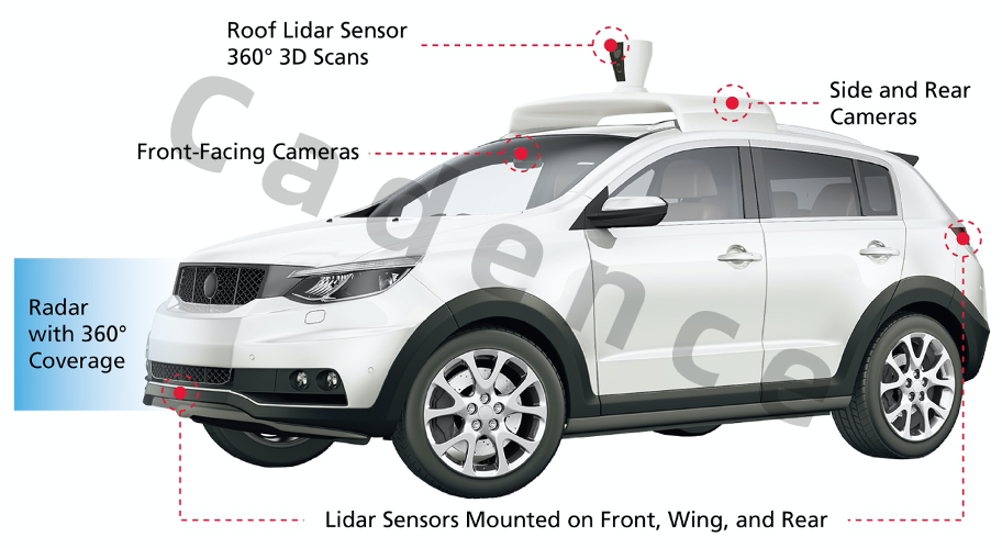 图 2:自动驾驶汽车利用多种传感器和摄像头来感知周围环境