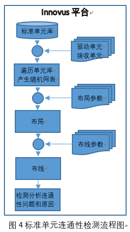 基于以上需求,我们用脚本产生一个网表,然后使用Innovus的布局布线工具来模拟标准芯片单元的管脚连接情况。图4是本方法的流程图。