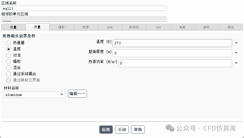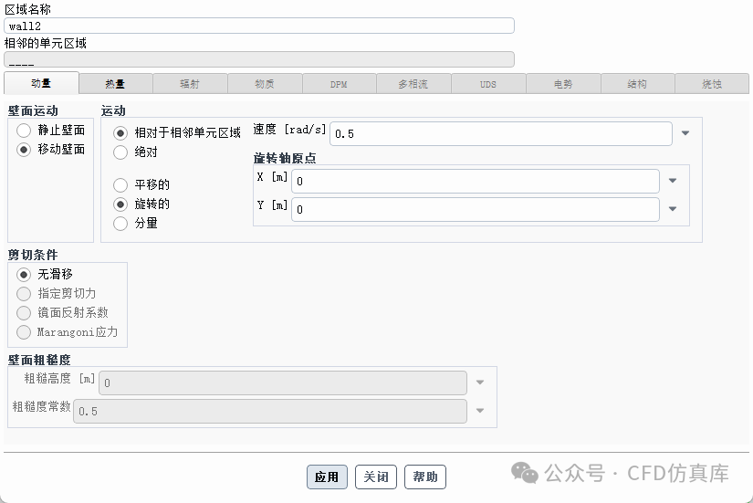 此处需要打开能量方程与层流模型,具体设置如下图所示:依据几何边界与模型介绍,此处对壁面展开旋转运动和温度的设置,具体设置如下图:
