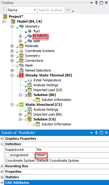- 选择"NutsBolts"并在底部详细信息面板中,为分配项选择steel