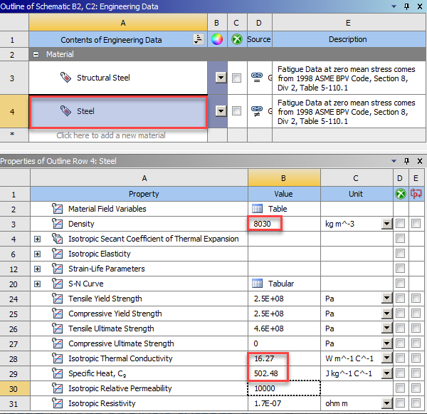 - 点击“Filter Engineering Data”,并修改材料数据: