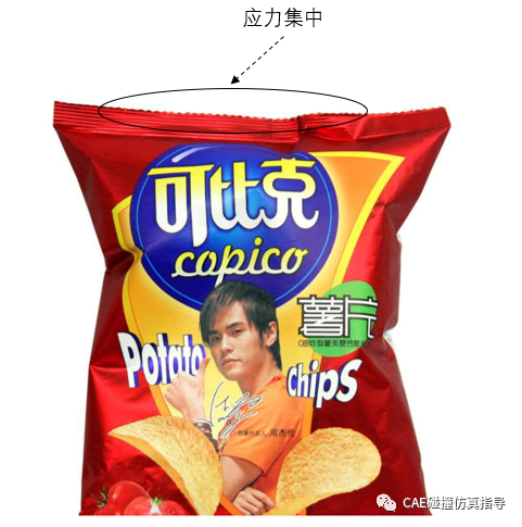 薯片袋上的锯齿区域应力集中,便于轻松撕开。除此之外超市用塑料袋,扯布,划玻璃,砍树,易拉罐等也是应力集中的应用。