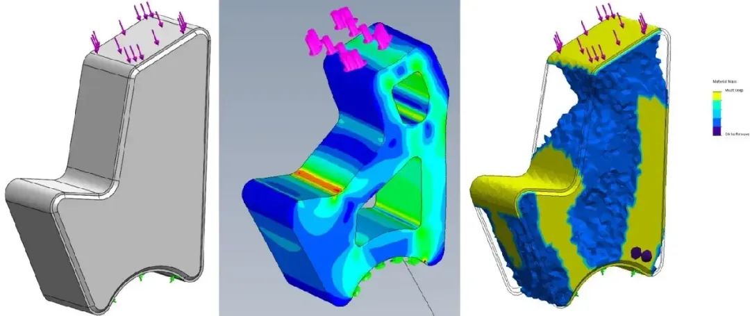 Seats 可以部署针对每个功能量身定制的仿真工具。Seats 设计师可利用基本的线性静态应力和运动分析,工程师则可借助运动分析的加载结果,使用高级分析工具运行更复杂的仿真,以验证创新设计和最终设计。“在设计零件时能够快速进行分析非常有用,因为你可以及时更改,然后重新运行仿真,看看更改是否解决了问题,”设计工程师 Austin Rendon 兴奋地表示。“我个人使用过 SOLIDWORKS 拓扑优化来减少粉末金属零部件的材料用量,还使用过 3DEXPERIENCE Works 仿真来优化焊接位置,在保持座椅框架整体强度和刚度的同时,减少焊接数量和材料用量。”