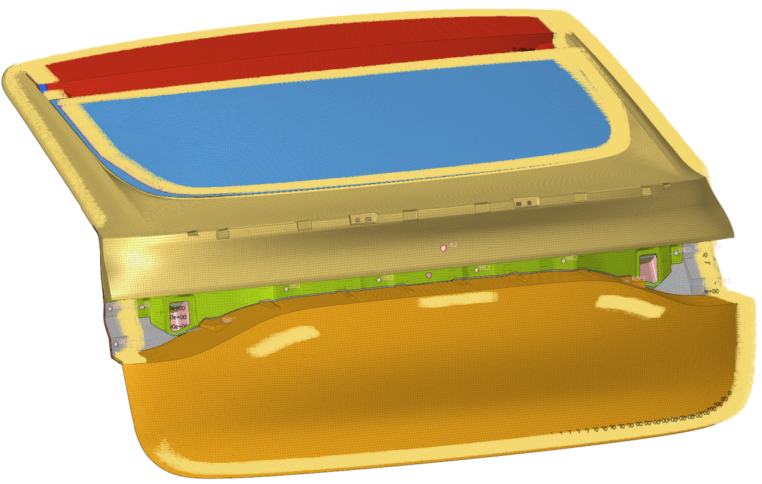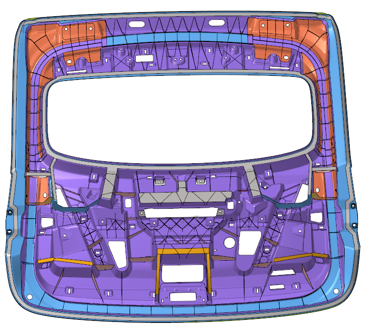 汽车轻量化一直备受关注,从前端至尾门,逐渐朝着以塑代钢的趋势发展。传统汽车的尾门采用钣金结构,不仅重量大,而且造型简单。目前,很多主机厂考虑研发塑料尾门替代钣金尾门,不仅可以减轻重量,而且造型可实现多样化,更能适合大众审美观。但是塑料尾门想要达到钣金尾门的所有力学性能指标,其结构设计难度远大于钣金结构设计。