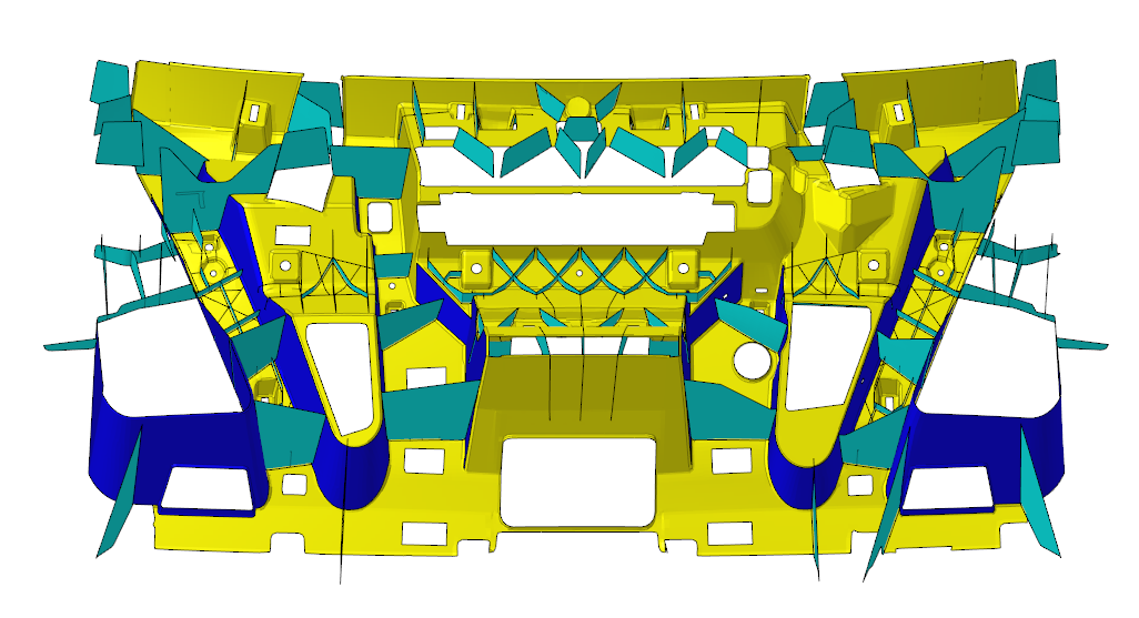 设计变量(Design Variables):尺寸变量分为多个区域,不同区域尺寸范围不一致,比如主面尺寸优化变量范围为2.2~2.5mm,筋的尺寸优化变量范围为2.0~2.5mm,如图7所示。