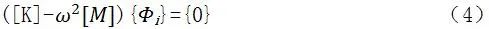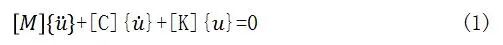 式中:[M]-总体质量矩阵,[C]-总体阻尼矩阵,[K]-总体刚度矩阵,在实际的工程应用中,大部分的结构阻尼较小,因此可以忽略上式中的阻尼矩阵(阻尼比超过0.2的结构,必须考虑),则上式可以变为:
