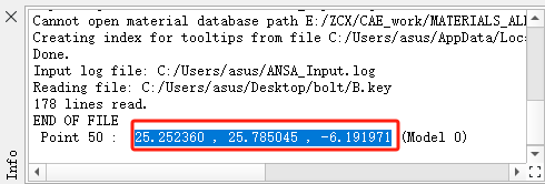 上文ANSA二次开发创建螺栓和Box连接里已经介绍了这种新的螺栓连接方式,优点是连接方便,不用顾及B总成的节点编号。缺点就是建模麻烦,需要一个个手动偏移点,建立box和SET,还有rbe2。但是,我们有ANSA二次开发这个黑科技,可以一键就生成螺栓和BOX,下面就由我来为大家讲解下代码和使用方法。首先用mesh模块下的Info命令,读取B总成的rbe2的主点坐标,坐标如下图:我们直接复 制他的坐标,下面来到我们的A总成界面,运行我们的代码,打开是如下的界面:在这个框里粘贴之前复 制的坐标,点击创建Box按钮!这样我们的螺栓和box,以及box的rbe2就创建好了,这里要注意的是,在执行脚本前,我们需要把A总成的include设置成当前,如下图,这样我们脚本创建的螺栓,box等一系列东西就会自动归到A总成的include下面代码其实非常简单,我们需要两个beam的端点来创建螺栓p, li { white-space: pre-wrap; } node = base.PickEntities(constants.LSDYNA, 'NODE')