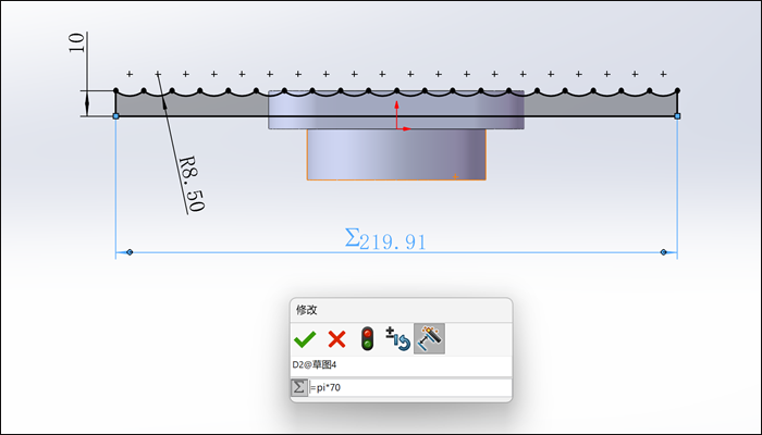 10.点击草图绘制,在第2步的拉伸端面上绘制如下图所示的草图,点击勾号完成。