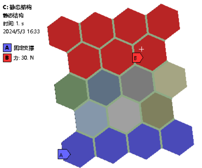 设置背板下端面为固定支撑,在背板上部分施加30N的力载荷,如下图所示。