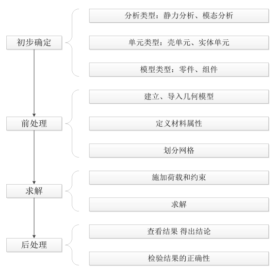 ANSYS Workbench的仿真分析流程可以概括为以下四个主要步骤: