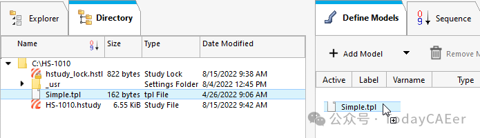 2.在Add Study对话框中,输入研究名称,选择研究的位置,然后单击OK。4.添加Parameterized File模型。a)从Directory中,将Simple.tpl文件拖放到工作区中。b)在Solver input file列中,输入res。这是HyperStudy在评估期间写入的求解器输入文件的名称。c)在Solver execution script列中,选择Templex。6.转到Define input variables步骤。 8.Optional:右键单击工作区中的任意位置,从上下文菜单访问其他编辑和可视化功能。三、执行试运行