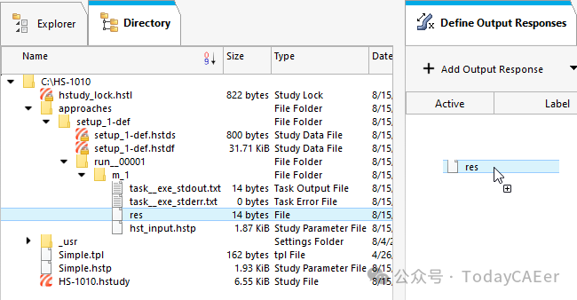 在study Directory中创建approaches/setup_1-def/ 目录。approaches/setup_1-def/run__00001/m_1 目录包含输入文件,该文件是试运行的结果。四、创建和评估输出响应