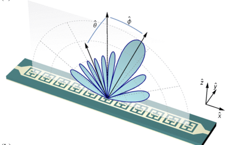 超表面概念已成为一种有利的可重构天线架构,用于波束形成和波前整形,其应用包括卫星和地面通信、雷达、成像和无线电力传输。超表面由亚波长的单元以及之间亚波长间隔构成。每个单元都可以建模为一个可极化偶极子,将波导模式耦合到辐射模式。有研究表明,在超表面与波导馈电相互弱的情况下,超表面可以很好的实现波束赋形能力。