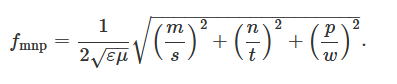 理论上,具有金属壁的矩形腔谐振器的谐振频率由下式给出