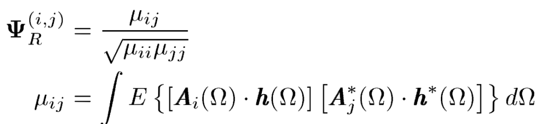 分别表示天线元 i 和 j 的场方向图,*表示其共轭,E{.}表示其期望。