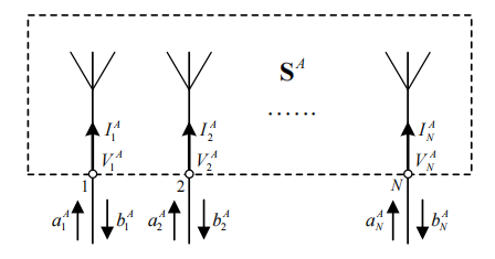 设 N 元耦合天线阵的散射矩阵为SA,其归一化电压入射波aA是 N 维列向量,它