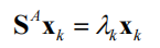 求解方程 det(SA-λI) =0 ,可以得出 N 维矩阵SA的特征值λk ,及其相应的归一化特征向量xk (其中 k=1, 2, ..., N),它们之间有