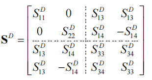 去耦网络散射矩阵应满足:See^D 是二元对角矩阵,Sii^D 是对称矩阵。Sie^D 的第 1、2列分别是x1 和x2的若干倍;Sei^D 是 Sie^D 的转置。所以它具备如下形式