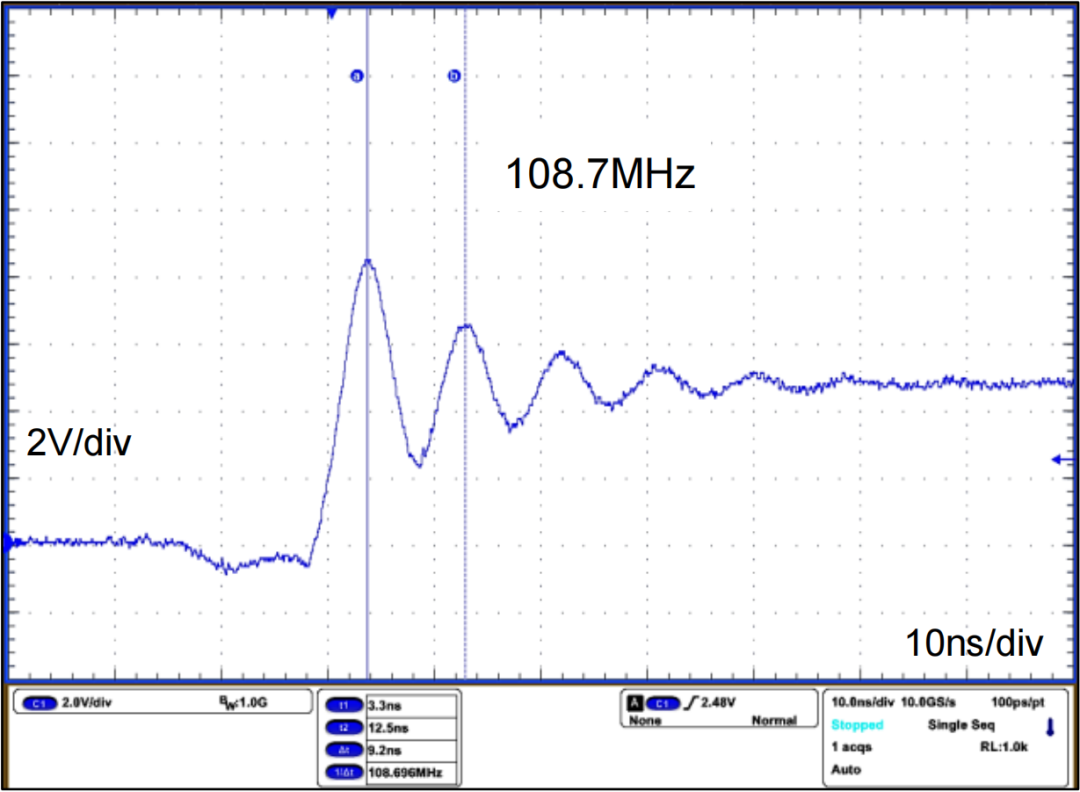 #1. 使用示波器测得振铃频率fr。