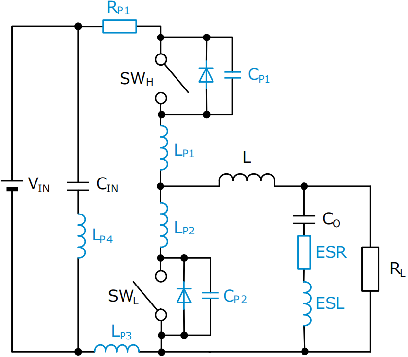 图20-2:考虑寄生参数的电路