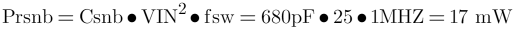 8. 缓冲电阻RSNB的消耗功率由如下公式求得。举例输入电压VIN为5V、开关频fSW为1MHz,因此