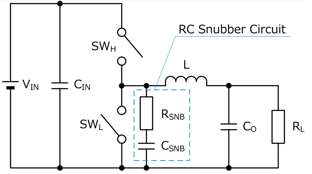 开关一个周期合计会由电阻产生CSNB×VIN×VIN损耗,仅开启关断的次数就会产生损耗,所以产生损耗由CSNB×VIN×VIN×fsw求得。即使无负载,但是只要有开关动作,缓冲电路就会产生损耗,所以这就成了效率降低的要因。