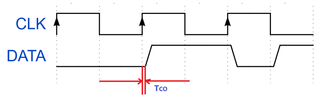 输出数据相对时钟的延迟;数据发送端受制造工艺的影响,在发出时钟后,数据出现在器件引脚上需要一定的延迟,这段延迟就是TCO;