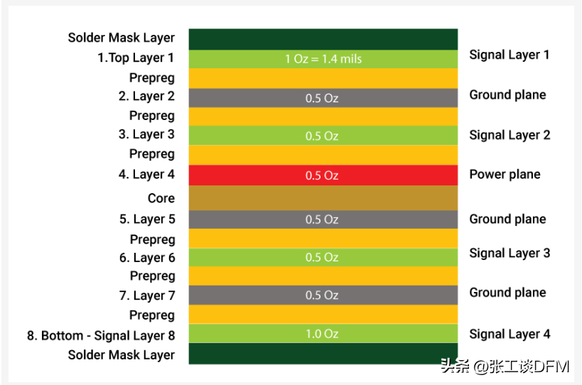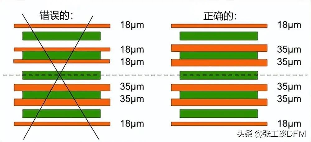 3、在堆叠中,电源层应对称放置,并且每个电源层中使用的铜重量应相同。