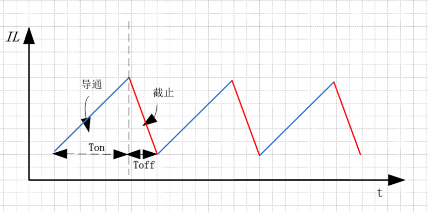 DC/DC电源芯片输出PWM调制波形,控制开关管Q的通断,在一个开关周期T内,Q的导通和关断的时间分别定义为Ton和Toff。