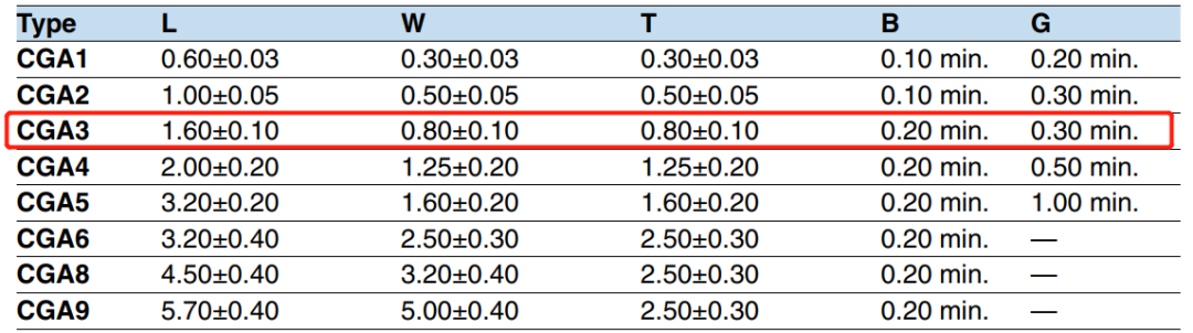 (1)(2)(3)(4)CGA系列封装--代表电容的封装为1210