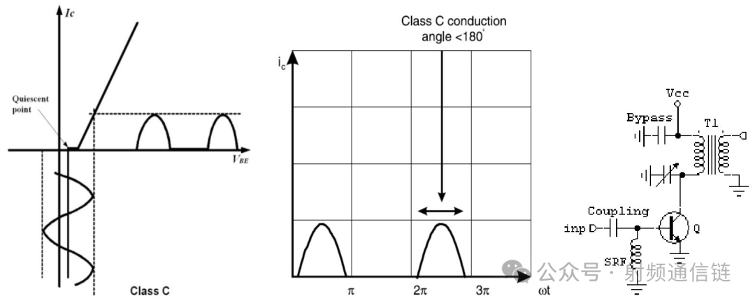 C 类放大器中晶体管的导通角明显小于 180°。