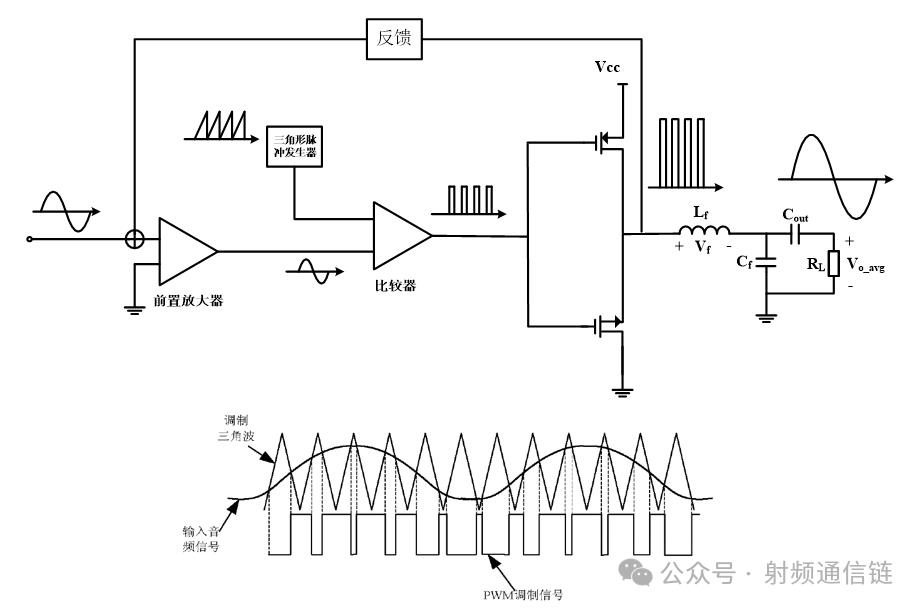 D 类放大器被定义为一种开关电路,它会产生半正弦电流波形和方波电压波形。D 类功率放大器使用两个或更多晶体管作为开关来产生方波漏极电压波形。一个串联调谐输出滤波器仅将基频分量传递到负载,调谐到在处谐振。
